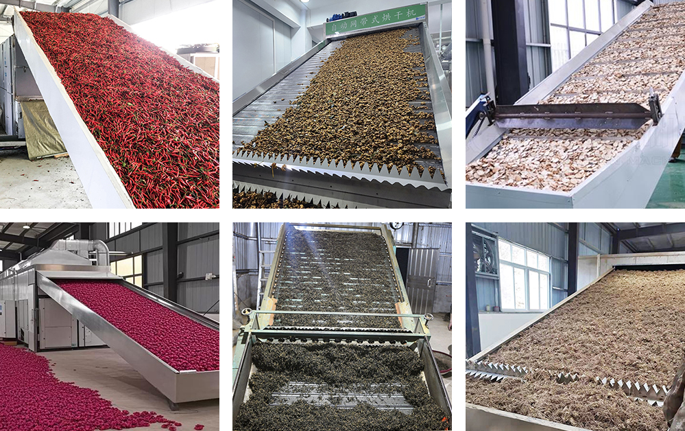產(chǎn)品簡介:多層網(wǎng)帶烘干機(jī)內(nèi)部采用304不銹鋼網(wǎng)帶輸送,物料經(jīng)提升機(jī)傳至烘干機(jī)上部網(wǎng)帶, 然后通過傳動電機(jī)及輸送網(wǎng)帶的運(yùn)轉(zhuǎn),自動進(jìn)出物料,物料經(jīng)最頂層網(wǎng)帶依次向下輸送,在落料過程中,物料翻動,使物料的受熱面發(fā)生變化,干燥均勻,濕料從進(jìn)料口 進(jìn)入烘干機(jī),在烘干機(jī)內(nèi)部網(wǎng)帶上完成干燥,干料經(jīng)網(wǎng)帶從出料口自動排出。